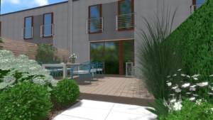Projekt nowoczesnego ogrodu przy szeregowcu w Zalasewie pod Poznaniem jest przykładem na to, że na stosunkowo niewielkiej przestrzeni można zaplanować kilka miejsc wypoczynku, w którym każdy domownik znajdzie przestrzeń tylko dla siebie. Takie rozwiązanie było możliwe dzięki podziałowi ogrodu na wnętrza oddzielone od siebie subiektywnie kurtynami z wysokich roślin zimozielonych.